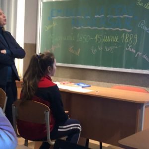 Activitatea a constat intr-o prezentare PPT despre viața și opera lui Mihai Eminescu urmată de audiția unor cântece pe versurile poetului.